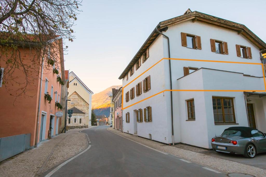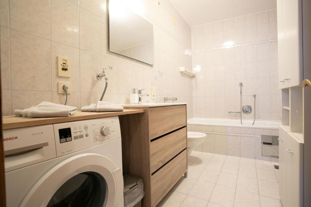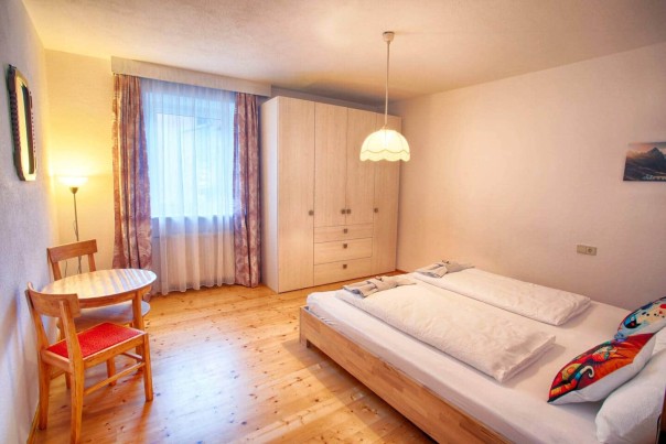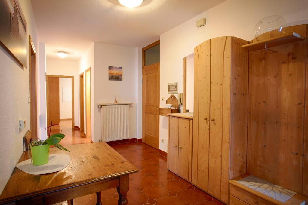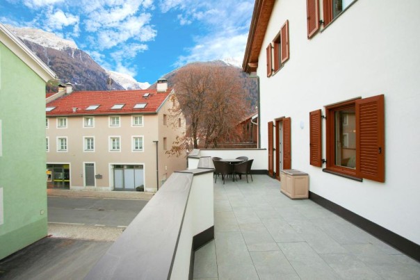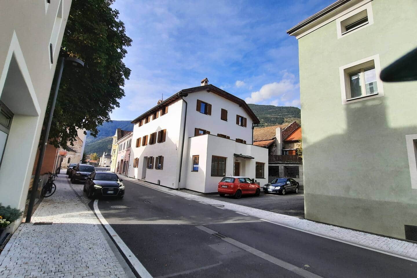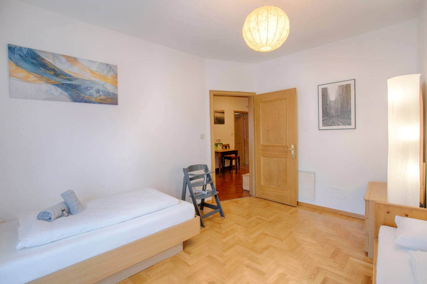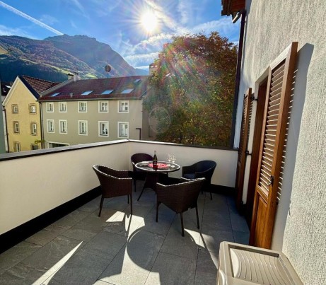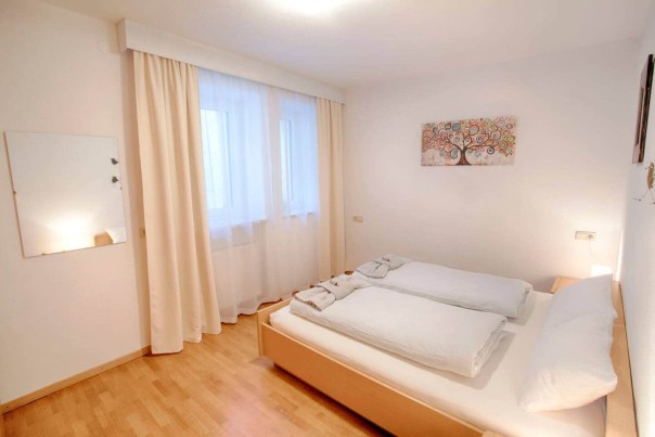 Die gesamte Wohnung ist hochwertig eingerichtet, und die Holzböden im Esszimmer und in den Schlafzimmern verleihen dem Raum eine warme und behagliche Note. Im Herzen des Apartments empfängt der großzügige Wohnbereich die Gäste mit einer perfekten Mischung aus Gemütlichkeit und Stil. Große Fenster eröffnen den Blick auf die atemberaubende Berglandschaft von Laas und laden dazu ein, die Naturschönheit in vollen Zügen zu genießen.