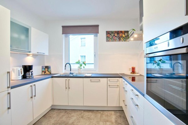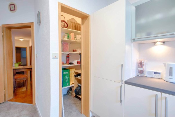Die Wohnung verfügt über ein gemütliches Esszimmer, das zum Verweilen und gemeinsamen Mahlzeiten einlädt. Die vollständig ausgestattete Küche lässt keine Wünsche offen: Ein Geschirrspüler, Kühl- und Gefrierschrank, vier elektrische Kochstellen, eine Kaffeemaschine, ein Wasserkocher und ein Toaster stehen Ihnen zur Verfügung. Kreieren Sie köstliche Gerichte und genießen Sie diese mit Ihren Liebsten in der warmen Atmosphäre dieses Raumes.