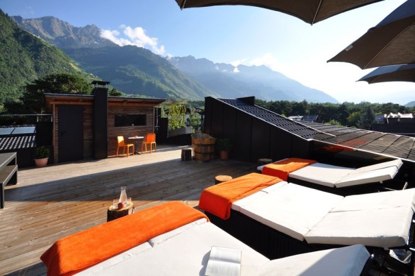 Genießen Sie unsere herrliche Panorama-Dachterrasse, die mit einer finnischen Sauna, einem Whirlpool und einer Skybar ausgestattet ist. Hier können Sie sich nach einem aktiven Tag entspannen und die atemberaubende Bergsicht genießen.