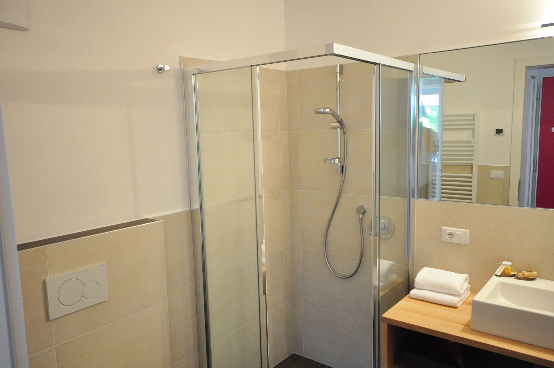 Entspannung pur: Eigenes Badezimmer mit Dusche, kostenlosen Pflegeprodukten und vorbereiteter Saunakorb für die Dachterrasse