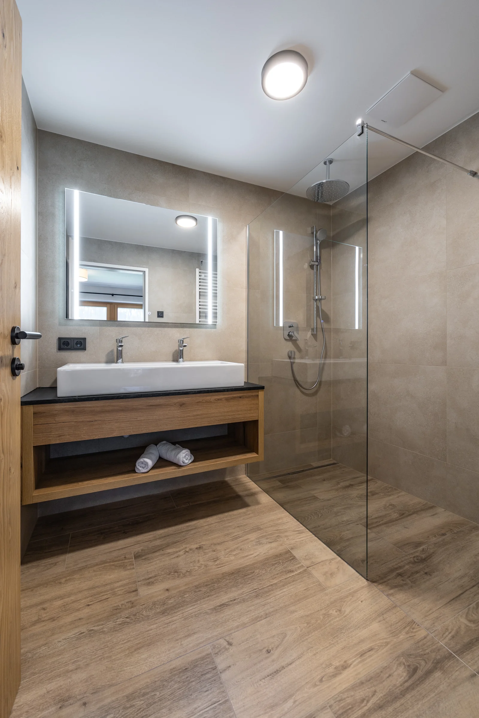 Ein neu errichteter Familienspielplatz bzw. kleiner Fußballplatz und Bachspielwiese mit Lagerfeuerplatz Tischtennisraum und Tischfußballraum, Trockenraum für Ihre Bekleidung, Schuhtrockenraum mit direktem Zugang von außen, Versperrbare Garage für Mountainbikes, W-LAN im Speise bzw. Aufenthaltsraum, Saunabereich (1-mal pro Aufenthalt gratis dabei).