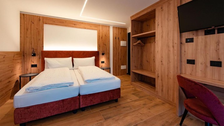 Unsere hellen, eleganten und komfortablen Zimmer sind der perfekte Rückzugsort für Ihren Aufenthalt. Jedes Zimmer misst 18 m² und bietet einen herrlichen Blick auf die Roda de Vael. Gebaut im modernen lokalen Stil, verfügen die Zimmer über ein eigenes Bad und einen Balkon – alles, was Sie brauchen, um Ihren Aufenthalt in den Bergen des Fassatals unvergesslich zu machen.