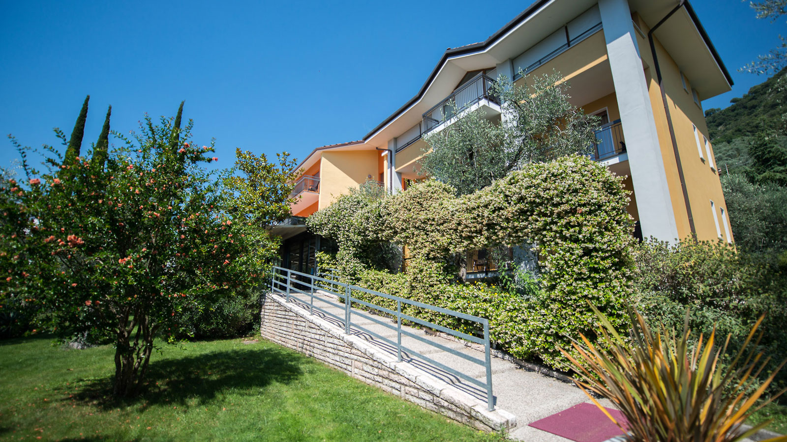 Nur wenige Schritte vom malerischen Gardasee und dem charmanten historischen Zentrum von Malcesine entfernt, liegt unser Hotel eingebettet in einen mediterranen Olivenhain. Genießen Sie den Duft unseres Gartens und die erholsame Atmosphäre des Sees, während Sie sich auf eine Art italienischer Entspannung einlassen.