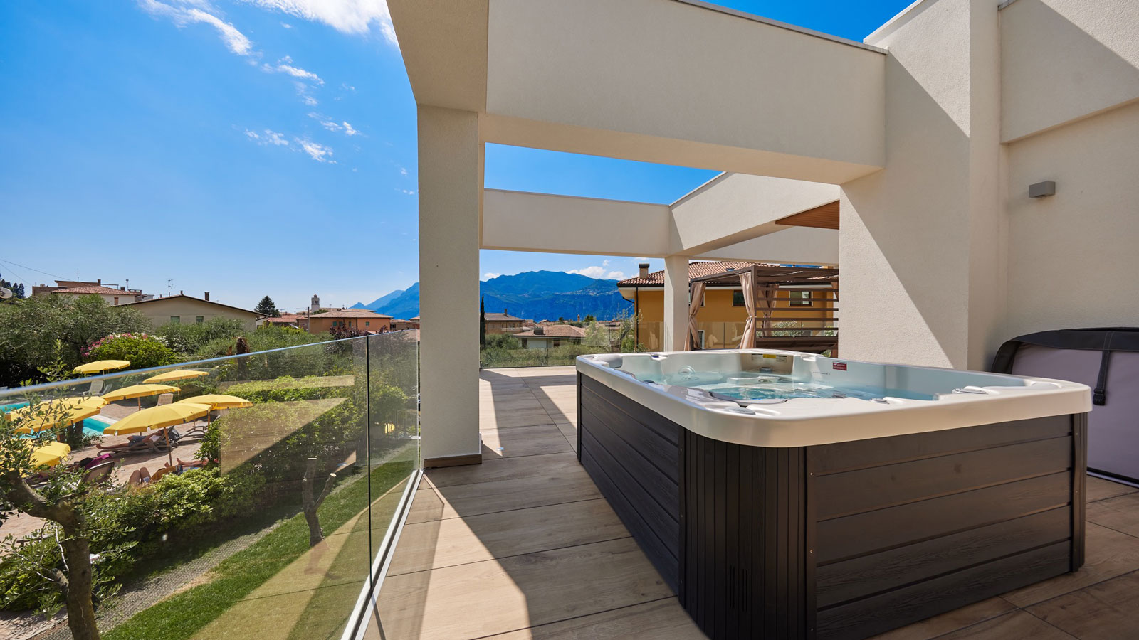 Für diejenigen, die es lieben, sich zu verwöhnen, bieten unsere neuen Catullo Suiten höchsten Komfort, entspannen Sie im Whirlpool. in einem hellen, unabhängigen Gebäude nah am Swimmingpool. Genießen Sie den Luxus eines Hotels, ohne auf die Freiheit verzichten zu müssen.