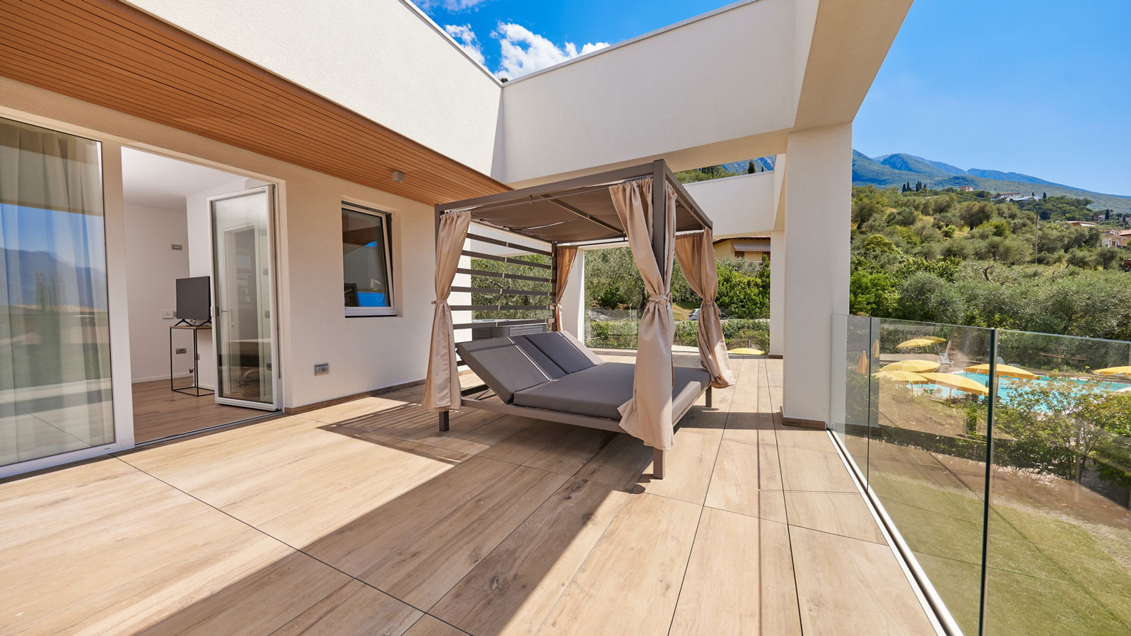 Unsere Zimmer und Suiten sind durchdacht konzipiert, um Ihnen maximalen Komfort zu bieten. Jedes Zimmer vereint modernes Design mit einer einladenden Atmosphäre und ist ausgestattet mit einem Balkon oder einer Terrasse, von wo aus Sie die atemberaubende Aussicht auf den Garten, die Berge oder den See genießen können.