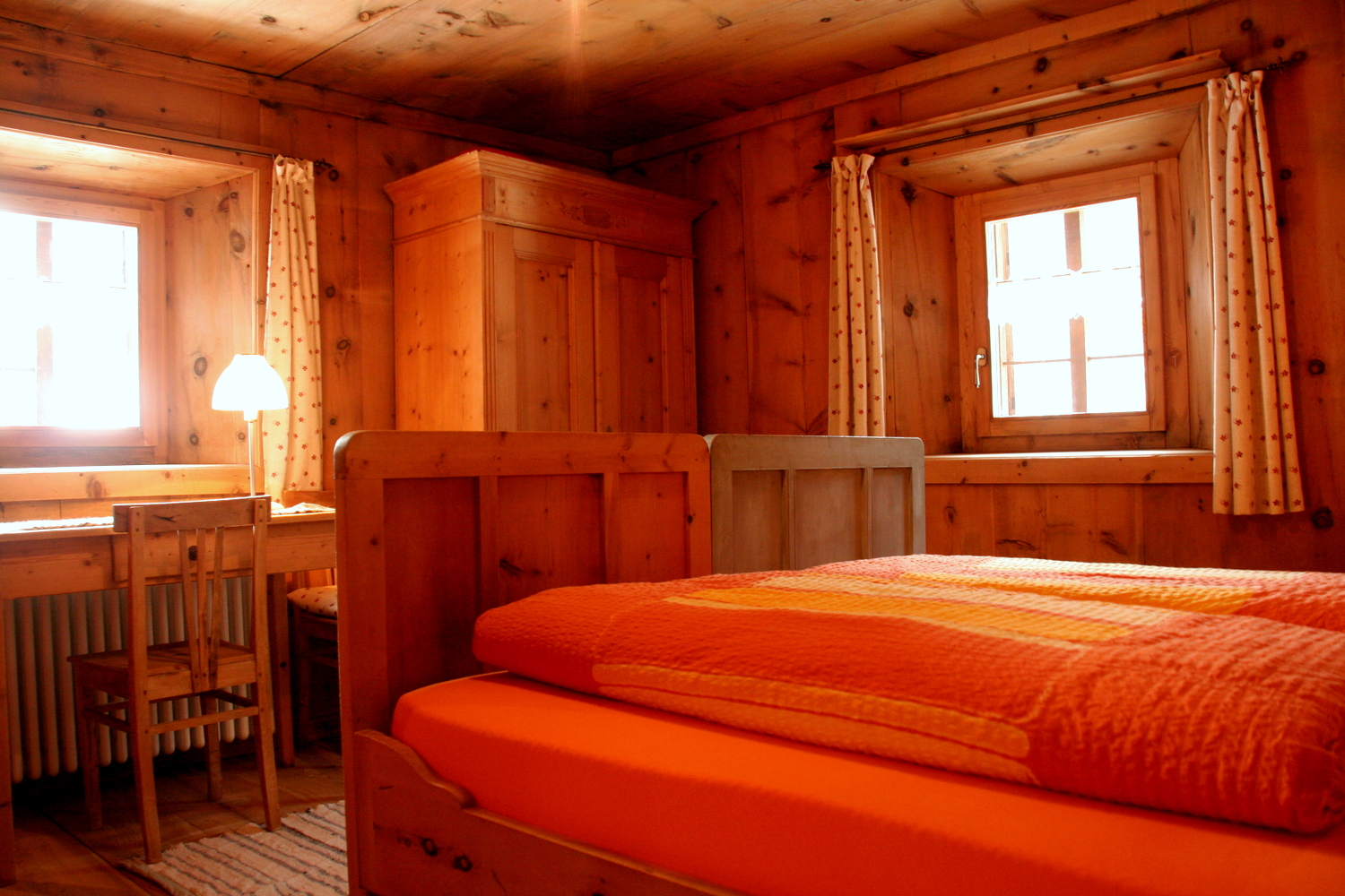 la Sctua da Damin: Groß und hell, ist dieses Zimmer ebenfalls aus Kiefernholz gefertigt. Hier lässt sich die Zeit vergessen, während der Blick auf die majestätischen Gipfel und dichten Wälder die Seele beruhigt. Auch dieses Zimmer kommt mit einem geschmackvollen Badezimmer mit Dusche.