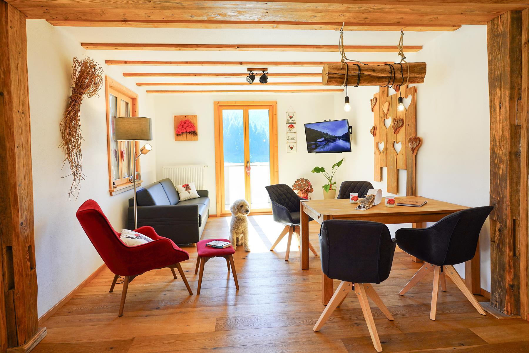 Unsere hundefreundliche Ferienwohnung in Lautenbach-Sulzbach bietet Platz für bis zu 4 Personen. Mit ihren 70 qm kombiniert sie rustikalen Charme mit modernen Annehmlichkeiten. Ein Schlafzimmer mit Doppelbett, ein einladendes Wohn-/Eßzimmer mit Schlafcouch, eine voll ausgestattete Einbauküche sowie ein großzügiger Balkon mit Blick ins Sulzbachtal laden zum Verweilen ein. Hier sind auch Hunde herzlich willkommen!