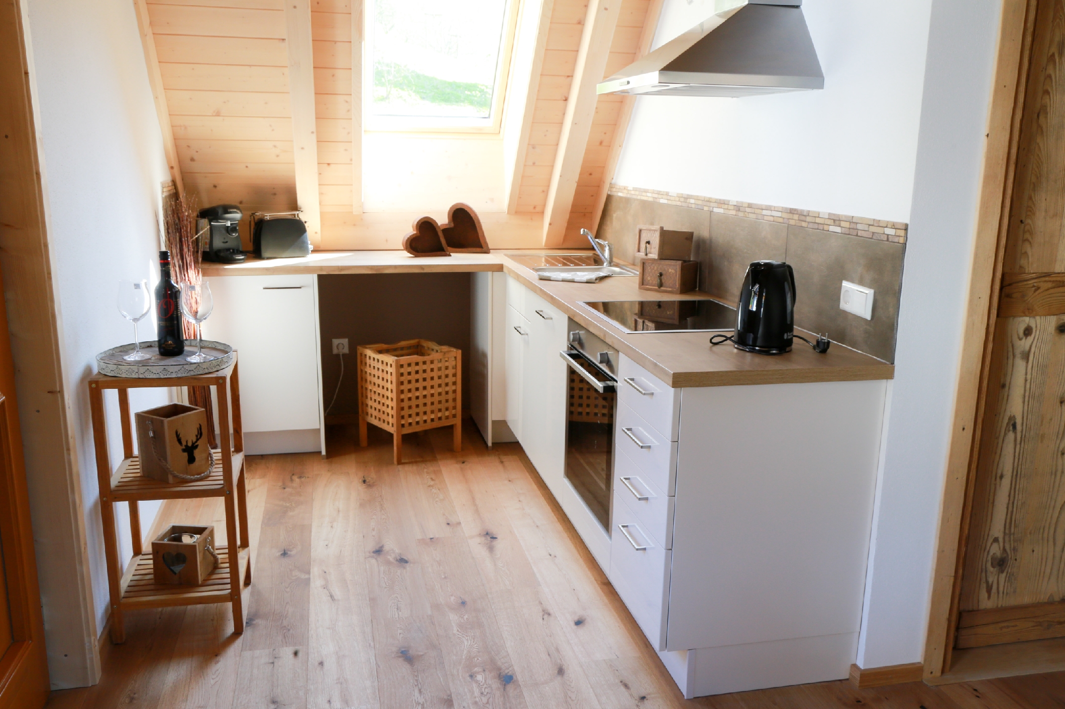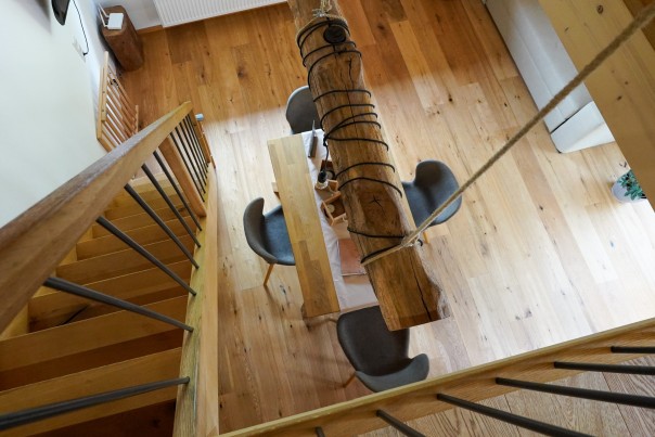 Unsere schnucklige 42 qm Maisonette-Wohnung bietet Platz für 2 Erwachsene und 2 Kinder. Der kreative Alkoven-Schlafraum und die helle offene Bauweise schaffen eine einladende Atmosphäre. Auch hier erwartet Sie eine voll ausgestattete Küche sowie ein Wohn-/Eßzimmer mit Schlafcouch.