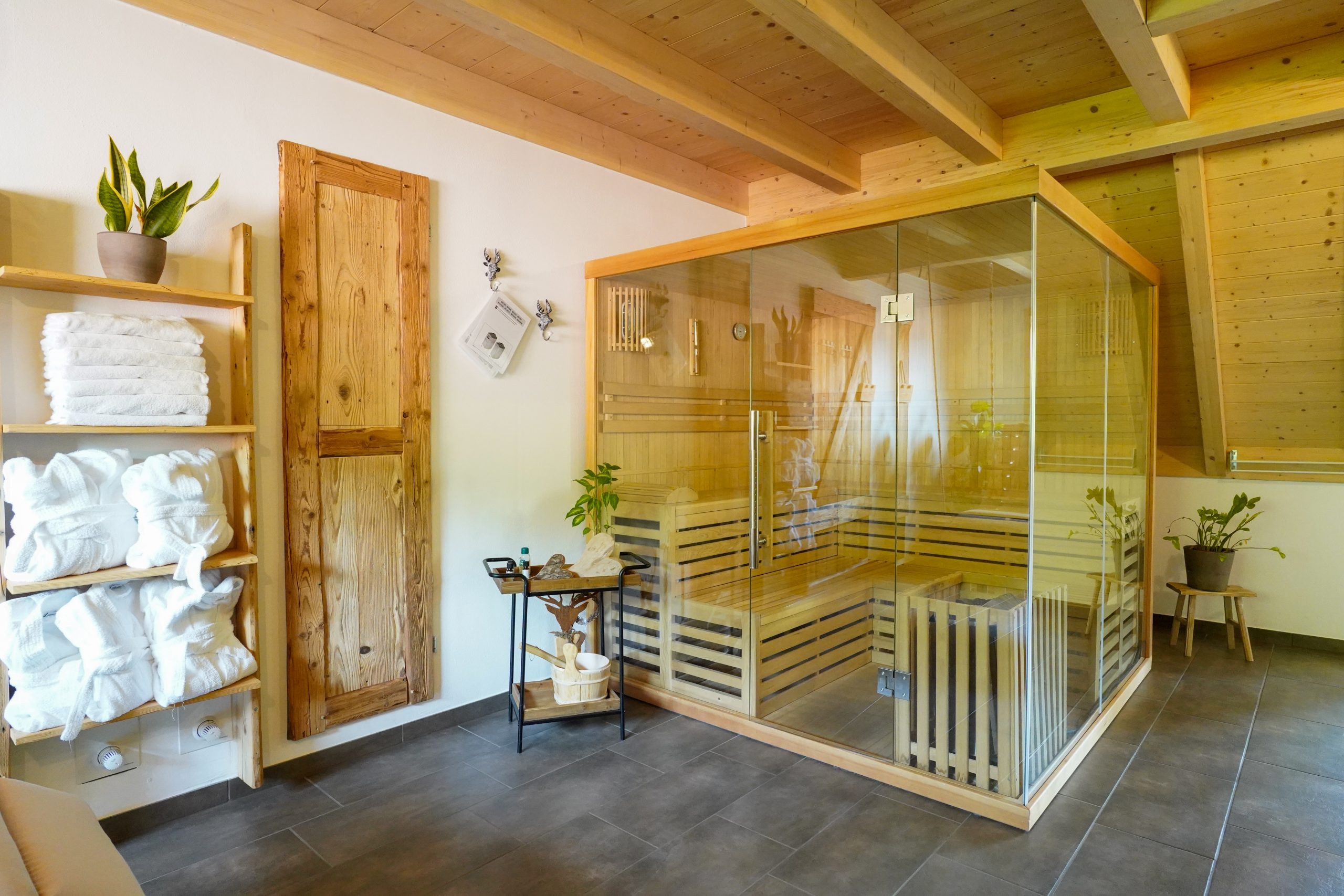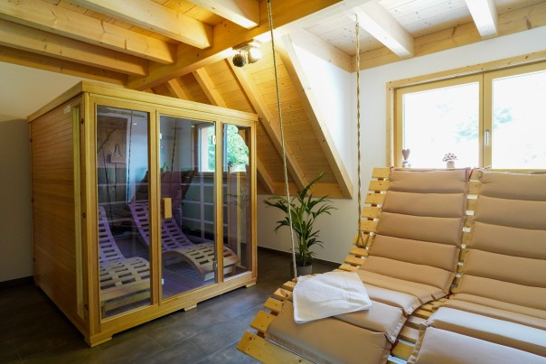 Nach einem ereignisreichen Tag in der Natur können Sie in unserem kostenlosen Wellnessbereich entspannen. Gönnen Sie sich eine Auszeit in unserer Sauna, Infrarotkabine und den Ruhebereich mit traumhaftem Ausblick.