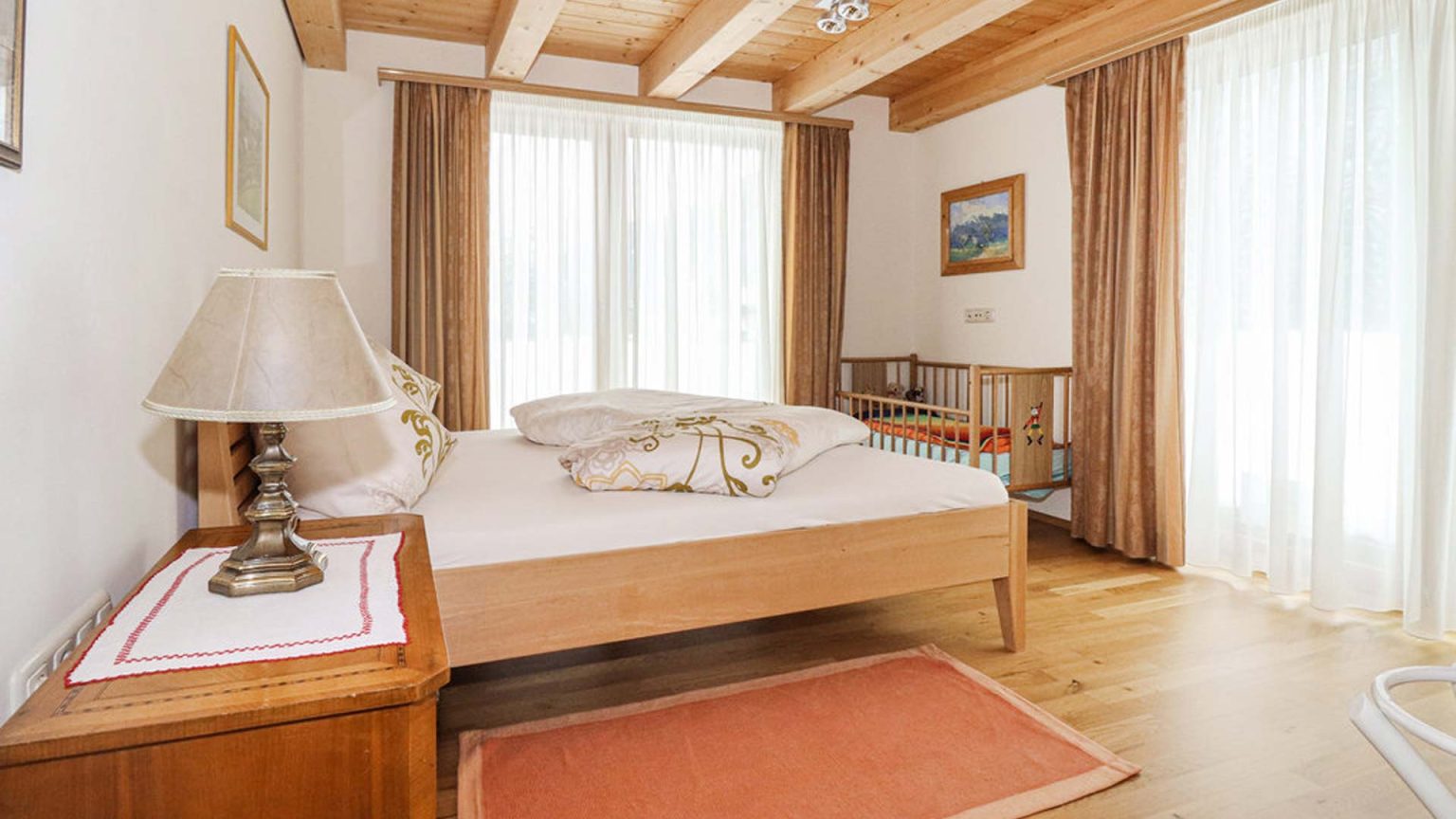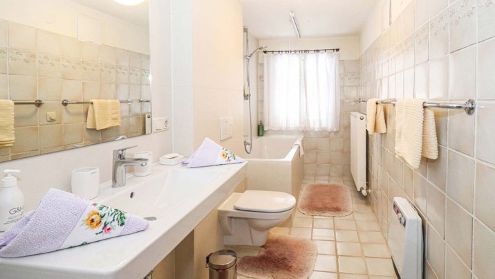 Diese großzügige Wohnung erstreckt sich über zwei Obergeschosse und bietet fünf Schlafzimmer mit insgesamt sieben Betten. Zwei neu errichtete und modern ausgestattete Badezimmer sowie eine einladende Stube und eine Wohnküche laden zum Verweilen ein.