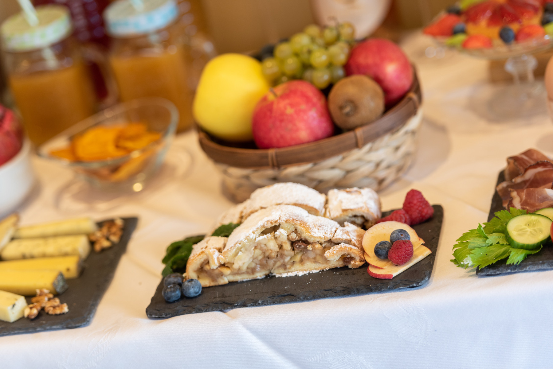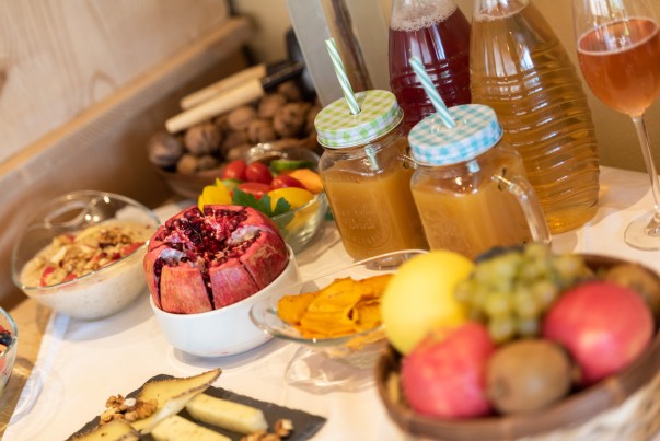 Beginnen Sie Ihren Tag mit einem liebevoll zubereiteten Frühstück – erwarten Sie Köstlichkeiten wie frisch gebackenes Brot, hausgemachte Marmeladen, Biohonig und saisonales Obst aus unserem Garten. Auch unsere Marende am Nachmittag mit typischen Südtiroler Snacks und einem Glas Wein oder Apfelsaft wird Sie begeistern.