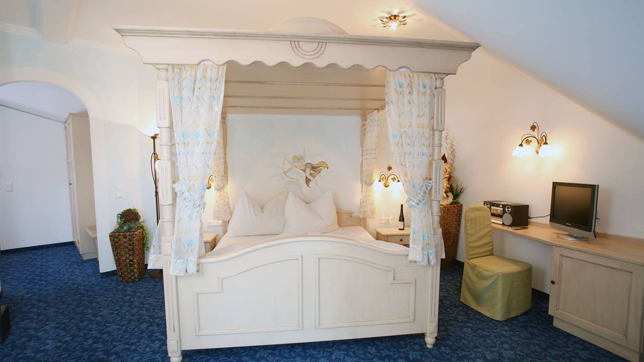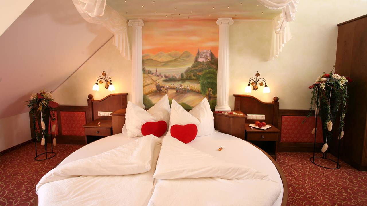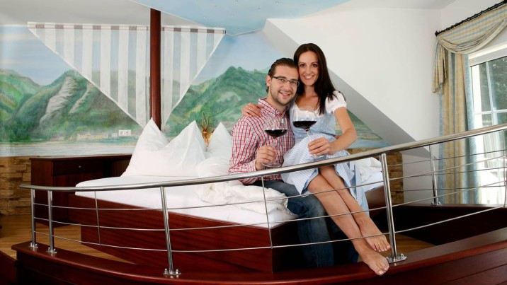 Verbringen Sie romantische Stunden in unseren außergewöhnlichen Themensuiten: "Himmelspforte", "Burgfräulein", "Burgverlies", "Mariandl" und "Donauprinzessin" laden zu erholsamen Nächten mit Panorama-Donaublick und Balkon ein. Für besonders anspruchsvolle Gäste stehen unsere neuen De Lux Suiten "Fantasia", "Süße Versuchung" und "Bacchussuite" bereit. Diese charmanten Räume bieten alles, was Sie für einen romantischen Kurzurlaub benötigen.