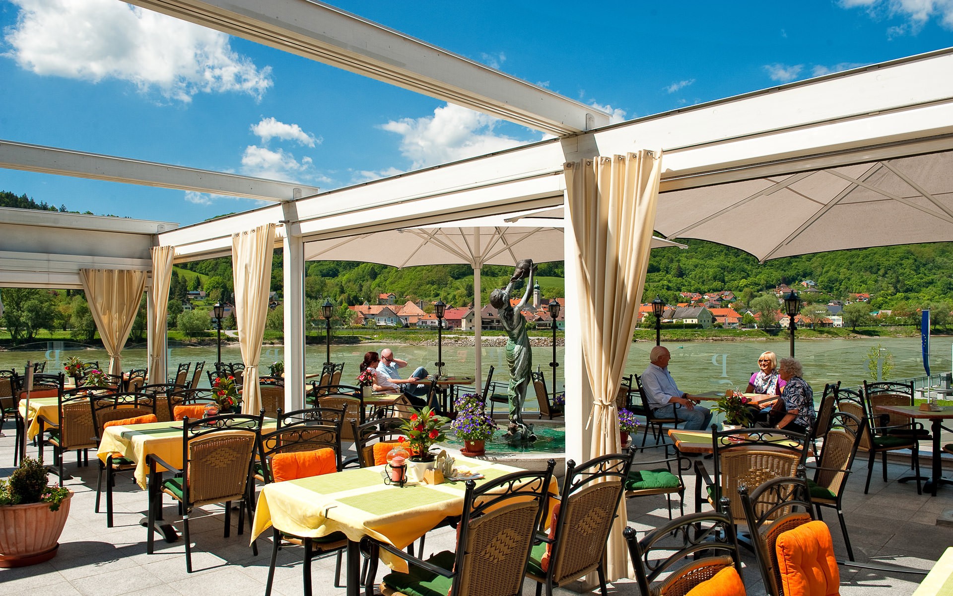 In bester Lage, direkt an der Donau und am Radweg, begrüßt Sie die Residenz Wachau im Herzen der malerischen Wachau. Auf der von unseren Stammgästen als schönste Terrasse beschriebenen Location, können Sie das bunte Treiben und die vielfältigen Schiffe, die sanft über den Fluss gleiten, hautnah erleben. Umgeben von einer traumhaften Landschaft, bietet unser Familienbetrieb Mario und Stella Pulker Ihnen die herzliche Gastlichkeit, die Ihren Aufenthalt unvergesslich macht.
