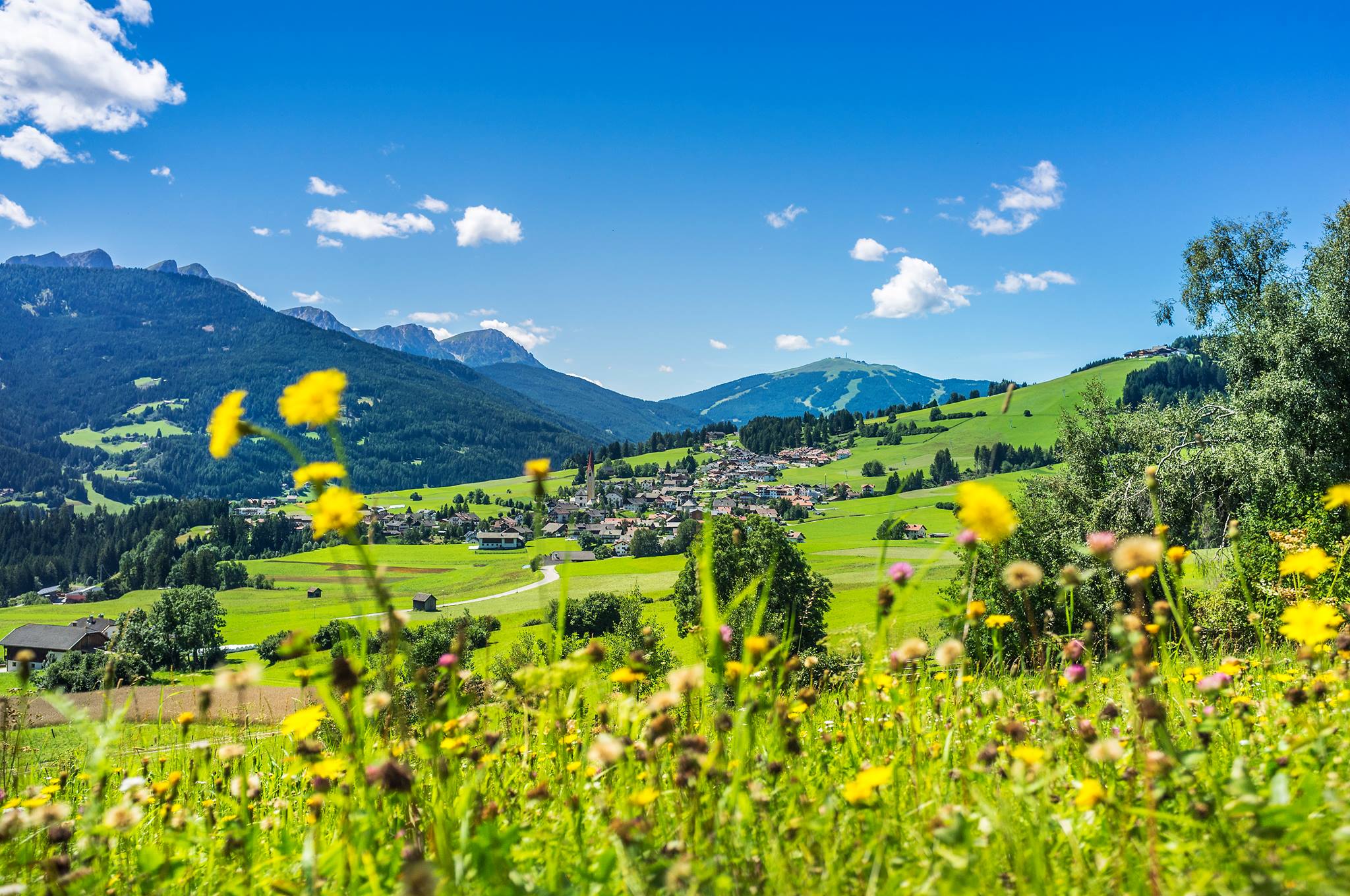 Unser Bauernhof liegt 1.200 Meter hoch, auf einem sonnigen Hochplateau am Eingang ins Gsieser Tal – sonnig, ruhig und doch zentral.