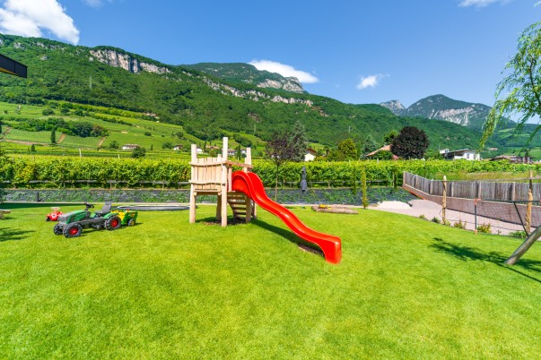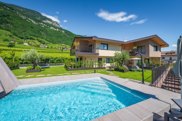 Unser neu erbauter Santinhof ist eine Oase der Erholung, perfekt gelegen abseits des Trubels im Zentrum von Tramin. Während die Kleinen auf der Liegewiese mit Schwimmbad nach Herzenslust spielen, können die Erwachsenen die Seele baumeln lassen. Die Umgebung, geprägt von sanften Weinbergen, bietet zahlreiche Möglichkeiten für Wanderungen und Fahrradtouren. Ein Ort, an dem sich die ganze Familie wohlfühlt!