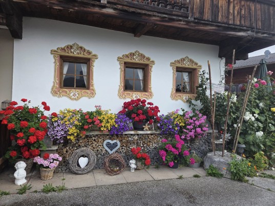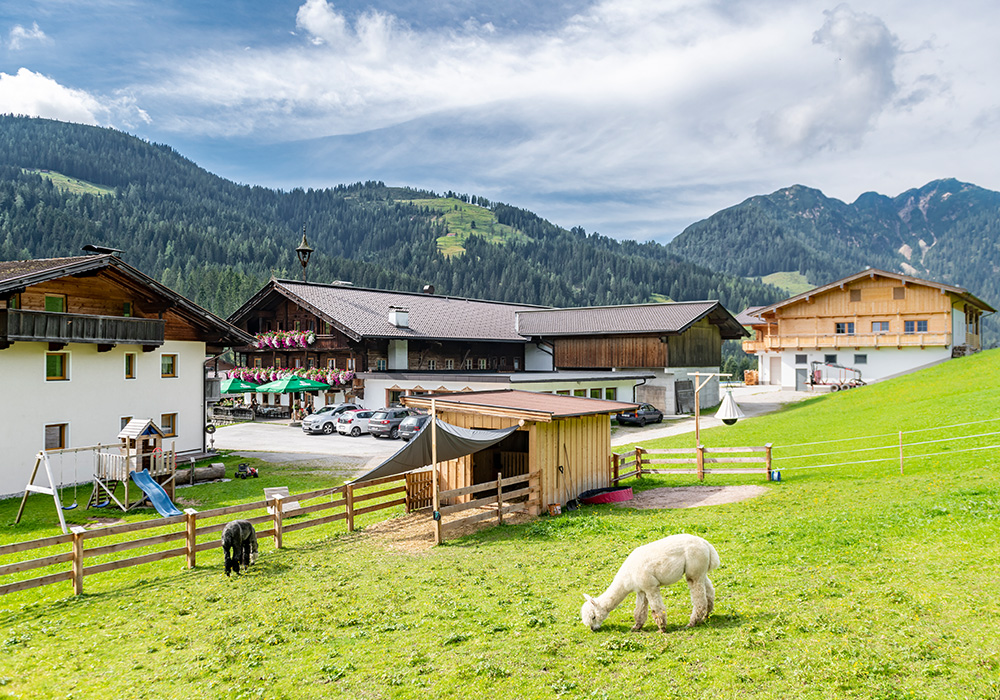 Als Mitglied der "Genusswirte Österreich" verwöhnen wir unsere Gäste mit traditionellen Schmankerln, zubereitet aus regionalen und frischen Zutaten. Genießen Sie unser reichhaltiges Frühstücksbuffet, während Sie die Aussicht auf die majestätischen Kitzbühler Alpen genießen. Unsere Sonnenterrassen laden dazu ein, die Ruhe inmitten der Natur zu erleben und vielleicht unsere Kühe beim Weidegang zu beobachten.