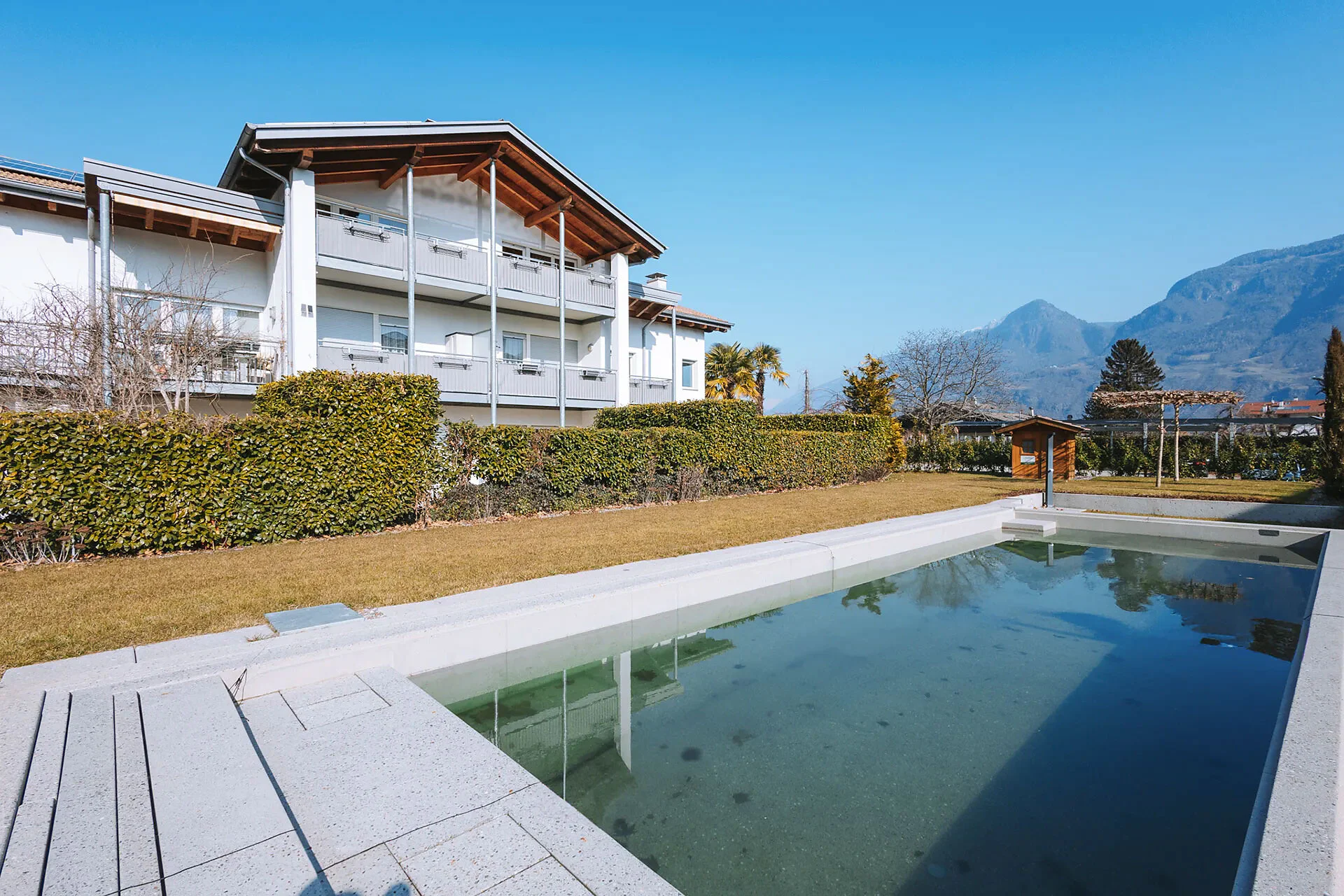 Genießen Sie die Annehmlichkeiten unseres beheizten Sole-Freischwimmbads oder lassen Sie sich von der Ruhe unseres großen Gartens verzaubern, während Sie ein gutes Buch lesen. Für unsere kleinen Gäste gibt es einen aufregenden Spielplatz, und unser Grill steht Ihnen jederzeit zur Verfügung. Zudem bieten wir sichere Fahrradstellplätze mit Ladeanschluss in unserer Tiefgarage an. Ein hauseigener Parkplatz ist ebenfalls vorhanden.