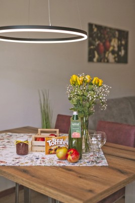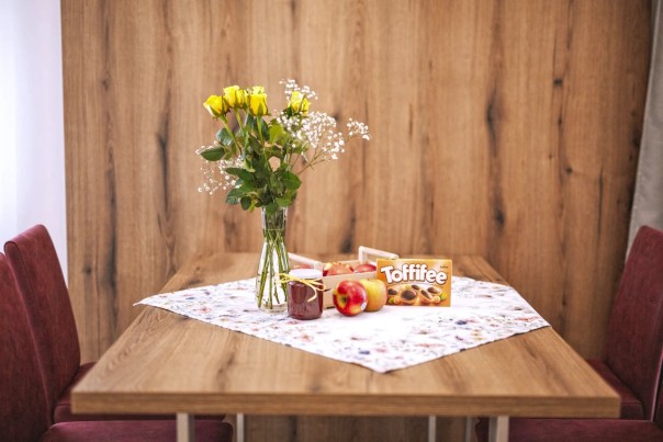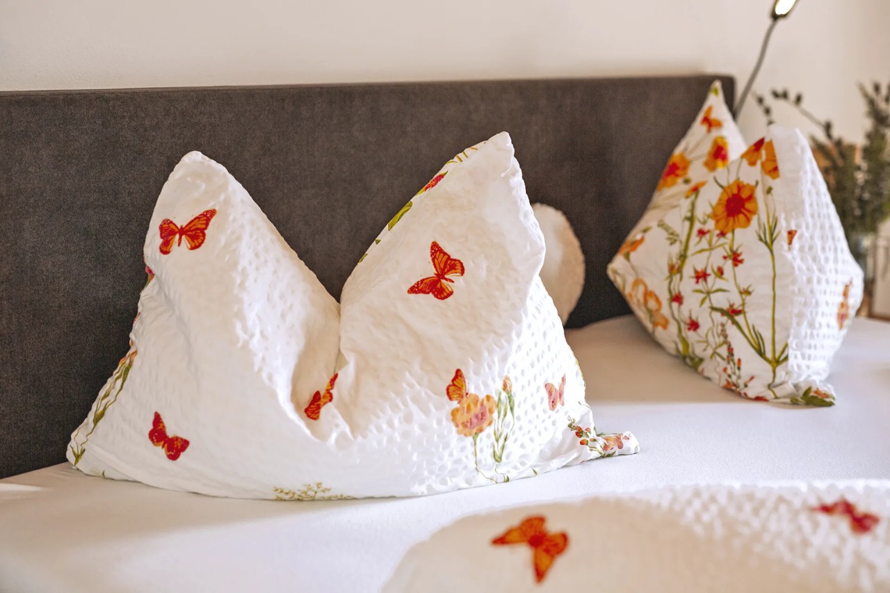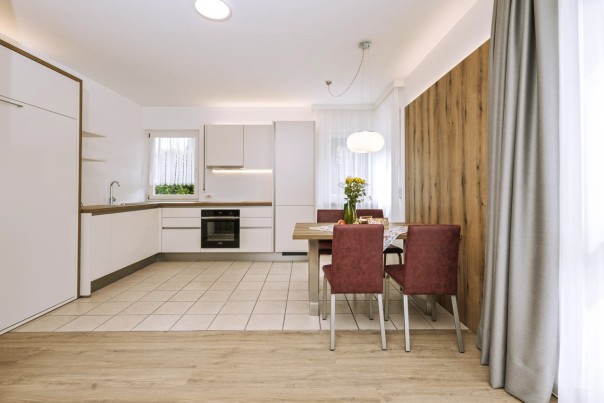 Unsere neuen Ferienwohnungen bestechen durch ihren Komfort und ihre Gemütlichkeit. Überzeugen Sie sich selbst von der liebevollen und modernen Einrichtung, die über einen Wohnraum mit Küchenzeile und großem Wandklappbett sowie ein geräumiges Schlafzimmer mit Doppelbett verfügt. Die voll ausgestattete Küche enthält einen Backofen, eine Kaffeemaschine sowie eine Spülmaschine. Das Badezimmer ist mit Dusche und WC ausgestattet. Für Ihre Sicherheit sorgt ein Safe, WLAN (Glasfaser) und Sat-TV. Bettwäsche, Handtücher und Geschirrtücher können nach Ihren individuellen Bedürfnissen gewechselt werden.